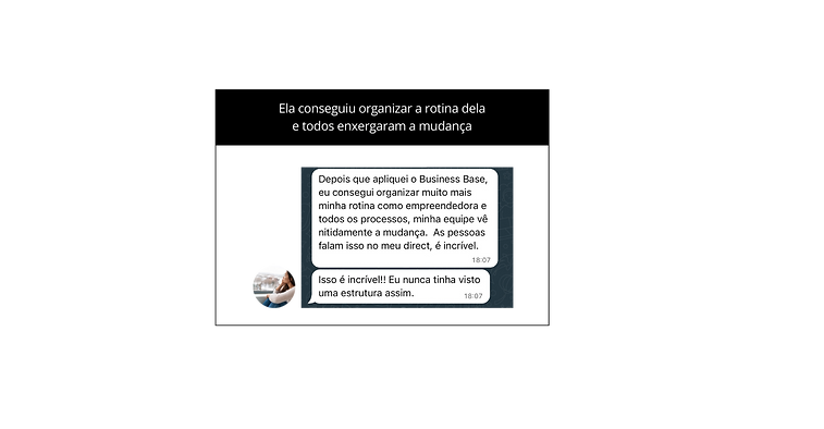 Depois de organizar minhas próprias empresas, criei o Business Base para ajudar outras empreendedoras a saírem do caos e construírem um negócio sólido, estruturado e pronto para crescer, sem precisar trabalhar 14 horas por dia.